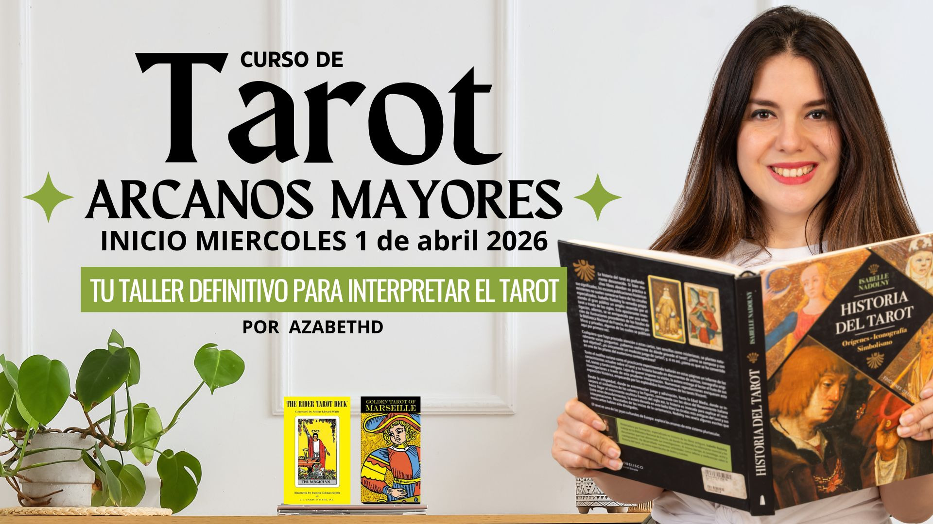 Aprenderás a interpretar 22 Arcanos Mayores desde un enfoque práctico, concreto y didáctico, para que puedas leer con seguridad y encontrar respuestas claras para tu vida (y la de otros). Todo desde la comodidad de tu hogar, sin complicaciones y acompañada paso a paso.